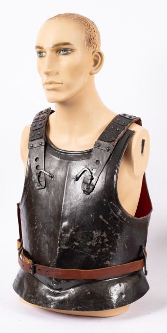 A reproduction English Civil War cuirass, comprising chest plate and back plate.