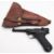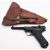 A KWC P08 Luger .177 calibre BB CO2 air pistol serial number '41002793', black frame with black plastic chequered grips, together in a brown leather Luger pattern holster. Please note - All modern air rifles and pistols will require face to face collection in person. Alternatively, the buyer should arrange for postage to a local RFD in their vicinity.
