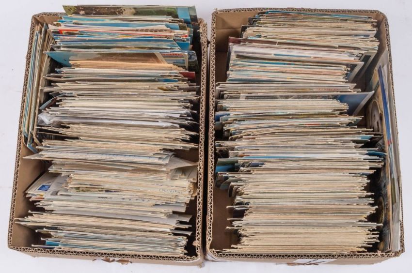 A large quantity of late 20th century topographical postcards, mainly foreign, some GB etc in two boxes.