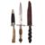 A late 19th/early 20th century German hunting knife by Anton Wingen Jnr, Solingen, the straight single edge blade stamped with maker's mark over a white metal ferrule and one piece antler grip in a black leather scabbard, together with another German hunting knife with Bowie pattern blade and mother of pearl dot inlaid horn grip in a brown leather scabbard and a one other knife by Henry Kauffman & Sons (3)