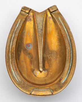 An early 20th century gilt brass horse shoe vesta case, unsigned, 5.5cm long