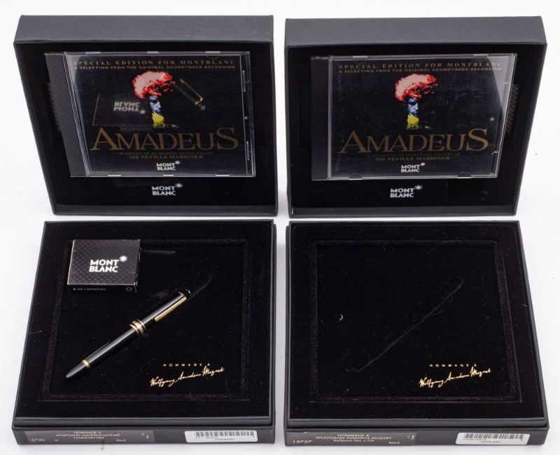 Mont Blanc 'Homage A Wolfgang Amadeus Mozart' fountain pen 15720, in original box with CD, and one other ball pen case (pen missing)