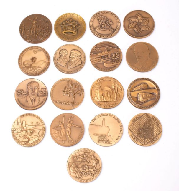 Sixteen various bronze Jewish history related medallions: