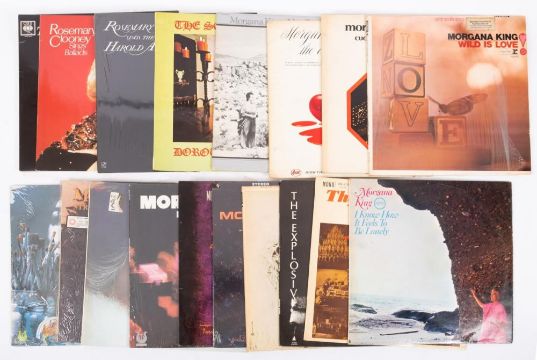Morgana KingThe End of a Love AffairLPAscotALM 13019Morgana KingWild is LoveLPPYE RecordsRS 6205Morgana KingNew BeginningsLPParamount RecordsPAS 6067Morgana KingHigher GroundLPMuse RecordsMR 5224Morgana KingWith a Taste of HoneyLPFontanaTL 5297Morgana KingPortraitsLPMuse RecordsMR 5301Morgana KingStretchin' OutLPMuse RecordsMR 5166Morgana KingMiss Morgana KingLPMainstream RecordsS 6052Morgana KingCuore di MamaLPMainstream RecordsMSL 1008Morgana KingEverything Must ChangeLPMuse RecordsMR 5190Morgana KingGemini ChangesLPWarner Bros/Reprise6257Morgana KingI Know How it Feels to be LonelyLPVerveVLP 9229Dorothy DoneganThe ExplosiveLPAudiophile RecordsAP209Judy GarlandA Star is BornLPHallmark RecordsSHM 654Dorothy SquiresThe Seasons of …LPPresidentPTLS 1032Dorothy Provine / Pinky & Her BoysThe Roaring 20'sLPWarner BrosWM 4035Barbra StreisandMy Name is Barbra Two…LPCBSSBPG 62603Barbra StreisandThe Barbra Streisand AlbumLPCBSBPG 626161Rosemary ClooneySings BalladsLP Concord JazzCJ282Rosemary ClooneySings Harold ArleyLPConcord JazzCJ 210