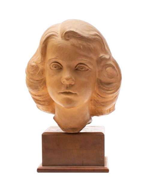 * Arthur Fleischmann (1896-1990) Bust of a Katherine McClure-Smith, aged 3, terracotta, incised signature A Fleischmann, 1942, mounted on a polished wood base, overall height 30cm high.