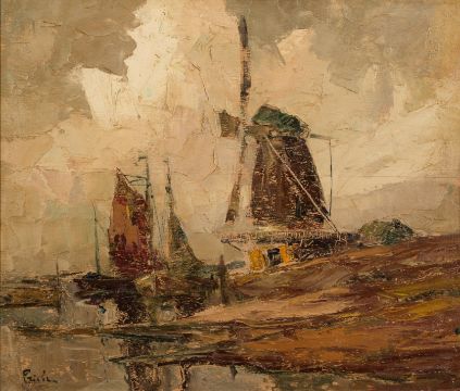 *Rudolf Priebe (German, 1889-1964) Luneburg, 1948 signed lower left and further inscribed verso oil on panel 36 x 42cm