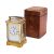 A French Victorian Corniche carriage clock the eight-day duration timepiece movement having a platform lever escapement, the white enamel dial with black Roman numerals and blued-steel spade hands, the Corniche case with three bail handle, height 17cm/14cm handle up/down. Complete with lather travelling box.