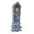 A Dutch blue and white delftware model of a longcase clock containing a late 18th Century watch movement the case painted with figures in landscapes and flower sprays, the movement by Thomas Haley, London, the circular enamel dial signed Lis Woirol, Paris, the case late 19th century, 31.5cm. high [some damage].