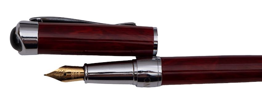 WITHDRAWN LOT A Mont Blanc fountain pen, mottled red body with iridium nib and original case