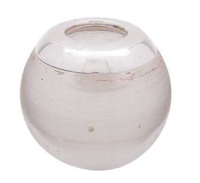 A George V silver and glass match striker, maker James Deakin and Son, Birmingham 1913, of globular form, 7.8cm high. together with a silver case travel clock, 7cm high, 6.5cm wide.