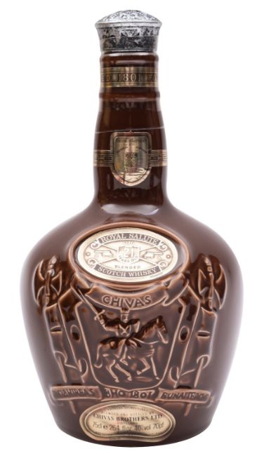 A bottle of Chivas Royal Salute 21 year old Scotch Whisky, boxed.