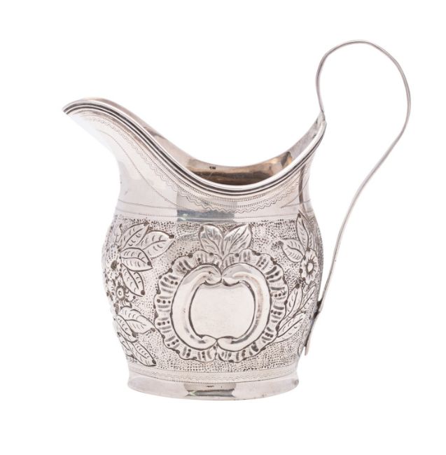 A George III silver cream jug. maker Peter, Ann & William Bateman, London 1801, of classical form, with reeded rim and handle, later decorated, 12cm high, 105 grams.