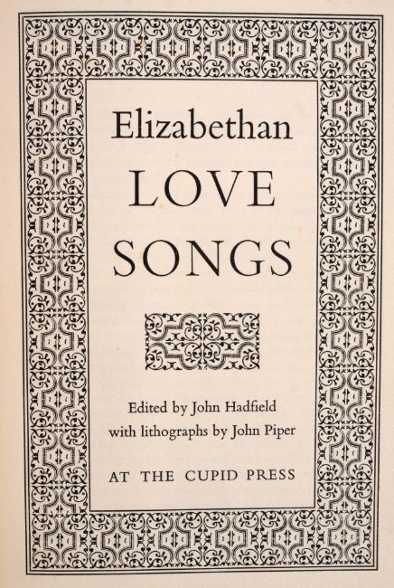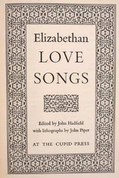 PIPER, John .(Illust.) Elizabethan Love Songs, edited by John Hadfield, eight chromolithographic plates, original marbled boards, cloth spine, with leather label in green dust wrapper, limited Edition of 660 copies numbered and signed by John Piper, The Cupid Press, 1955.