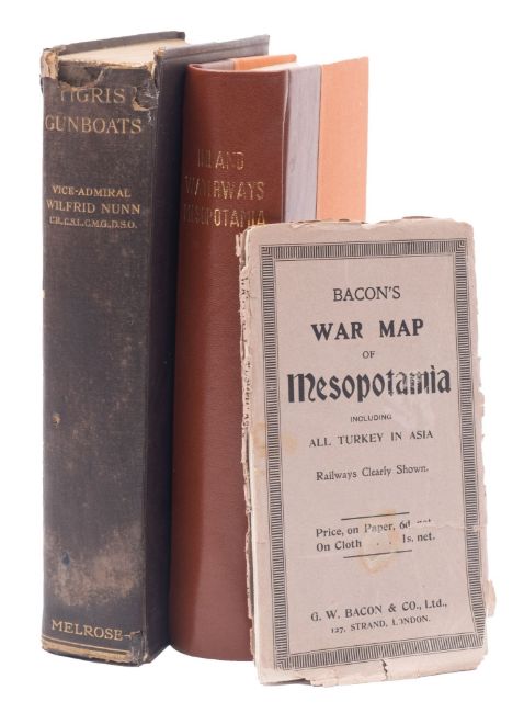 HALL, Leut- Col, L.G.A, The Inland Water Transport of Mesopotania Wilfred Nunn, Tigerous Gun boats, original cloth frayed at the head of the spine, illust, 8vo, 1932, with Bacon's wall map of Mesopotania (3).