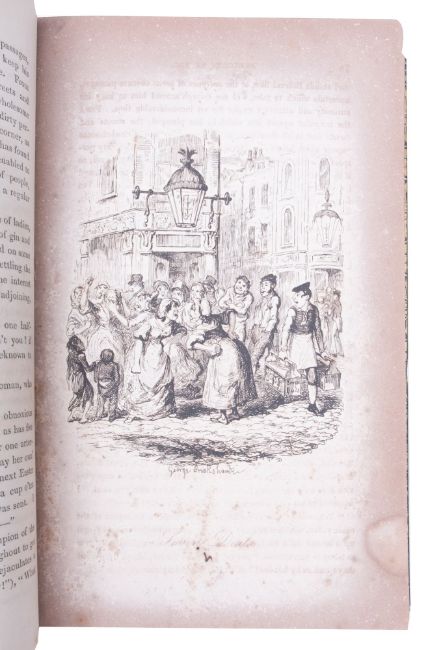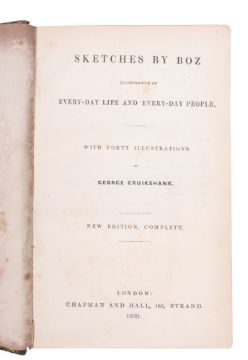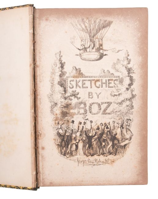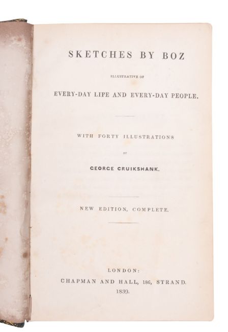 DICKENS, Charles, Sketches by Boz, illustrations of every-day life and every-day people, with forty illustrations by George Cruikshank, contemporary full green morocco with gilt borders, hinges rubbed, slightly loose in text block, 8vo, Chapman and Hall, new edition, 1839.