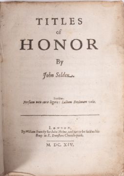 WITHDRAWN LOT SELDEN, John, Titles of Honor, vellum, 4to, London, 1614.