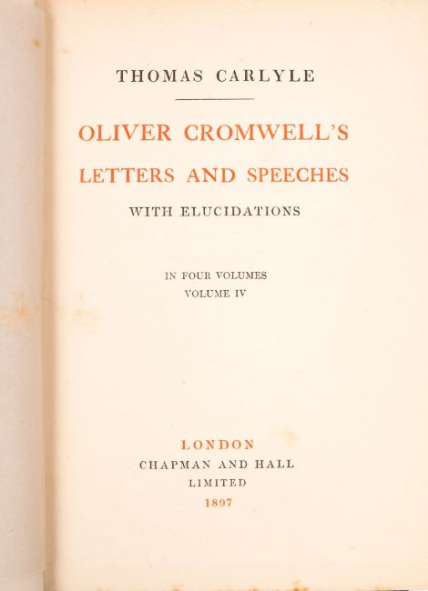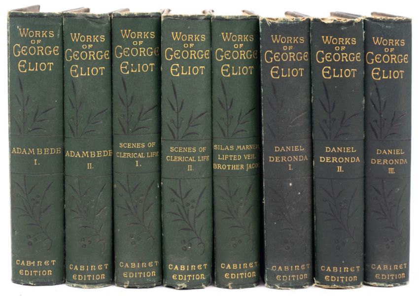 EVANS,Marian - Works of George Eliot, eight original cloth volumes, together with Thomas Carlyle, Oliver Cromwell's Letters and Speeches, four original cloth volumes. (12)