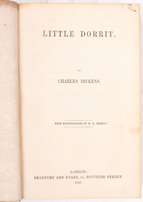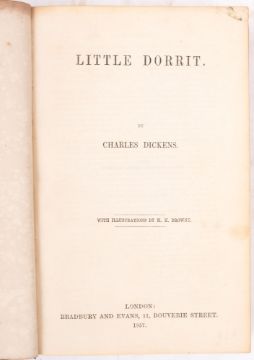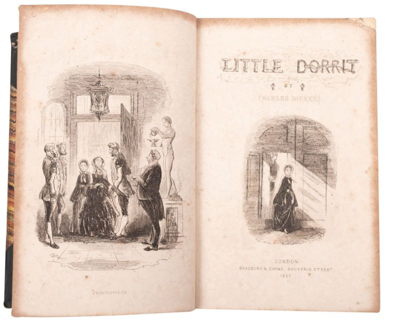 DICKENS, Charles, Little Dorrit, illustrated by H.K. Browne, half calf, 32 plates, publisher Bradbury and Evans, 1857.