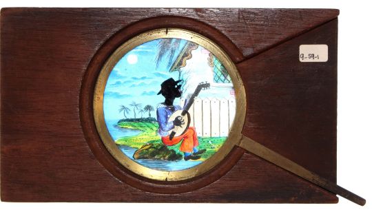'Black musician playing guitar' [head rocks backwards and forwards] Maker unknown (7 x 4 x 1/2 inches), single lever