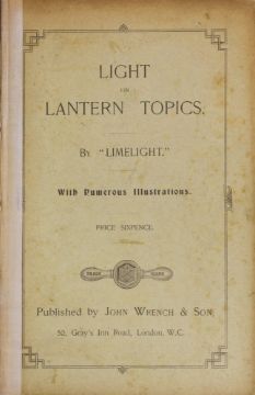 WITHDRAWN LOT 'Limelight',' Light on lantern topics' London: John Wrench & Son, 1905, 56 pp, pb