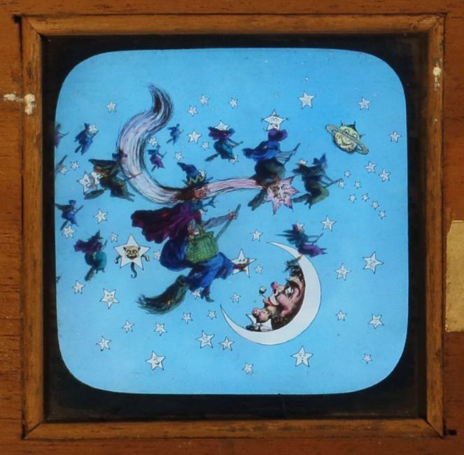 'Then on their Brooms they Mounted High' Slide 13 of 18-slide set Macbeth. W.C. Hughes, London; 10 x 4½ x ⅝ inches