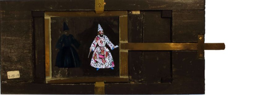 'Wizard's cloak changes to show playing cards' Maker unknown; 9¾ x 4½ x ½ inches, single slip