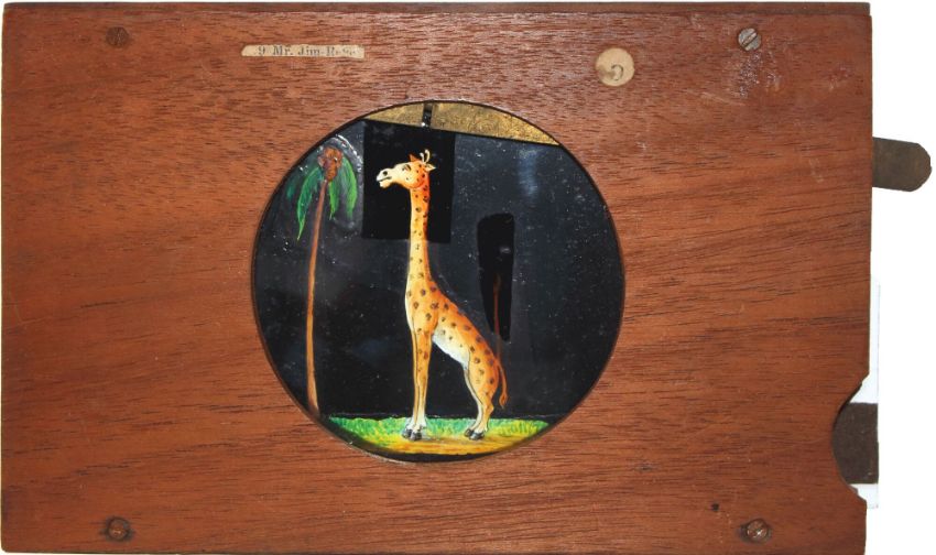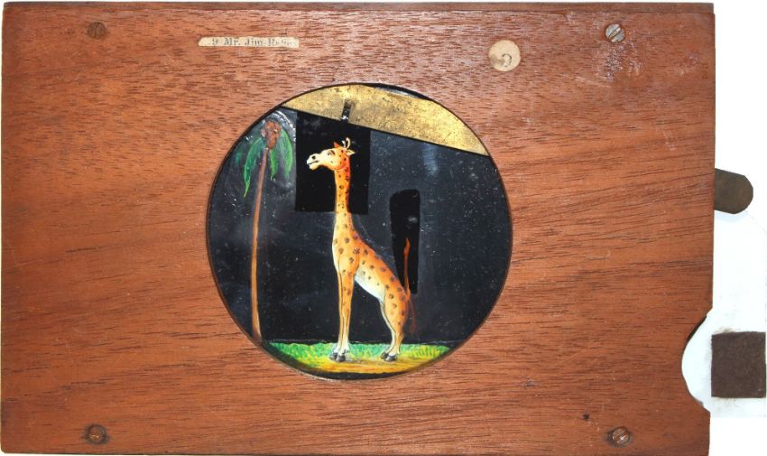 Slide 9,' Mr Jim-Rafe' [tail moves up and down, neck extends] W.C. Hughes, London (7 x 4 3/8 x 3/4 inches), single slip with single lever