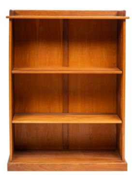 A contemporary oak open bookcase; with a three quarter gallery and adjustable shelves, on a plinth base; 128cm high, 97cm wide, 32cm deep