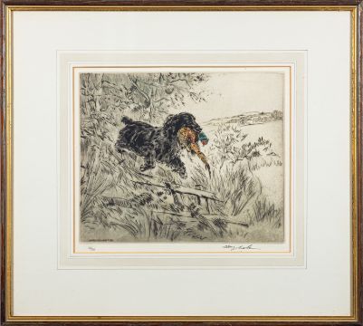 *Henry Wilkinson (British, 1921-2011)Spaniels flushing game, flat coat retrievers and a kingfisherEight coloured dry-point etchings27 x 36cm and smallerAll signed by the artist in pencil and numbered below the image
