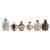 A set of six Chinese glass, hardstone and enamel snuff bottles and stoppers, late Qing/Republic including two examples in overlay glass and one interior painted with landscapes, 6-8.5cm [one stopper lacking] in original wood case with four-character inscription 'Xiang fu bai jiu' reading 'Perfumed cypress wine alcohol'.