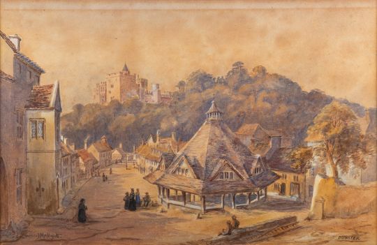 Hubert Medlycott (British, 1841-1920)Dunster Watercolour29 x 44cmSigned lower left and inscribed with the title lower right
