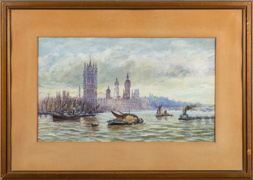 John Chambers (British, 1852-1928)London, Houses of ParliamentWatercolour28 x 48cmInscribed and signed lower left