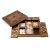 A Chinese gilt and black lacquer box and cover, of rectangular form decorated with landscape panels on a profuse floral and foliate ground, the interior fitted with five various boxes containing mother of pearl and bone gaming counters, 29cm wide, [damage to margins of cover].