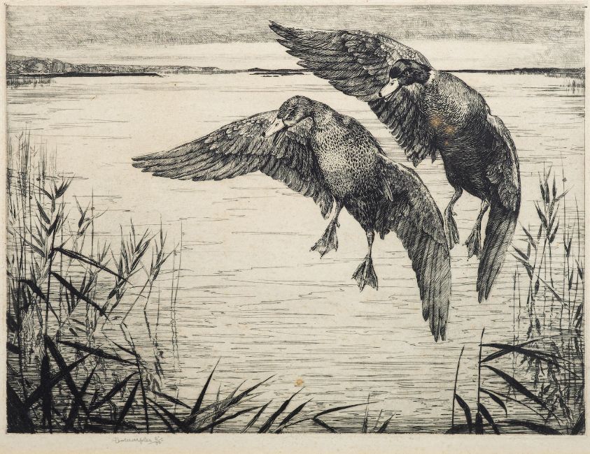 *Winifred Marie Louise Austen (British, 1876-1964)Snipe and DucksTwo drypoint etchings26 x 21.5cm and smallertogether with an etching of ducks by George Marples (3)