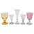 A mixed group of drinking glasses, comprising an ale mug engraved with hops and barley, a small trumpet shaped wine glass engraved with a hunting scene, a champagne flute, a small trumpet shaped glass with fold over foot, two coloured glass rummers, six various tumblers [one with lemon squeezer base] and four various beer glasses.