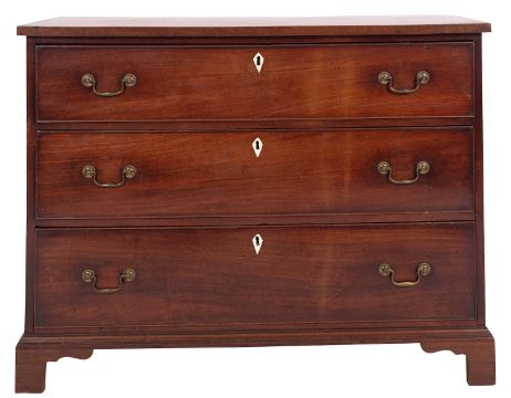 A George III mahogany chest of drawers, last quarter 18th century; the three long drawers all with inset bone keyhole escutcheons, twin brass swing handles and cockbeaded edges; on low bracket feet; 84cm high, 109cm wide, 55cm deep