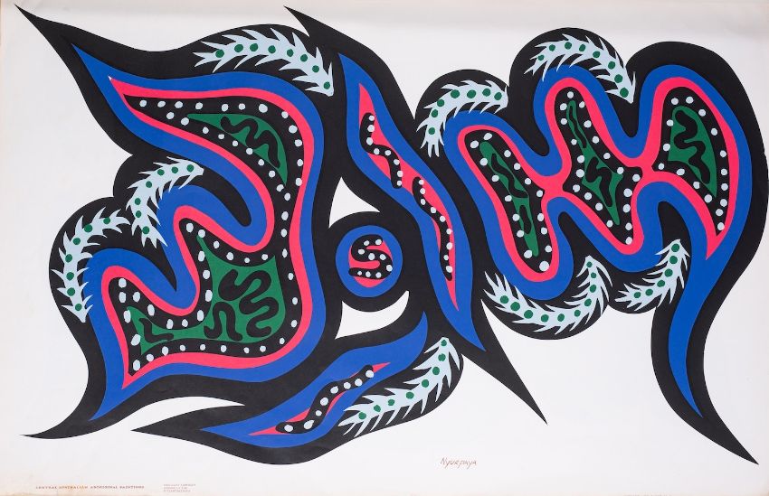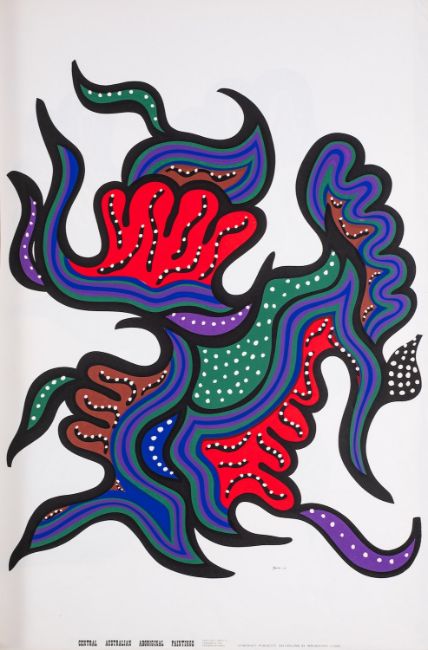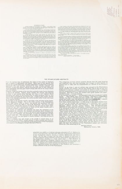 Aboriginal School, 20th Century Two copies of a folio each containing 6 coloured reproductions of Indigenous paintings. The title page text contains a foreword by Winifred Hilliard, author of 'The People in Between / The Pitjantjatjara Story', followed by a biography of Winifred Hilliard. One without cover, together with a third folio containing 7 different coloured reproductions with a similar title page.Folio, 50 x 37.5cm'Central Australian Aboriginal Paintings / Brilliant Abstract Designs of the Pitjantjatjara' Newcraft Publicity, Australia, 1968