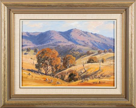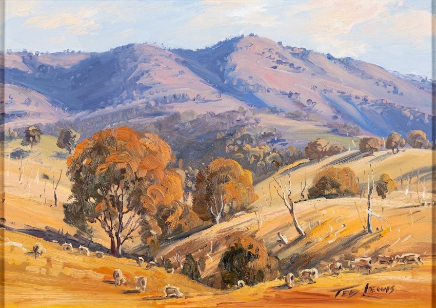Ted Lewis (Australian, b.1958)Grazing the Rocky near EuchareenaOil on board24.5 x 34.5cmSigned lower right