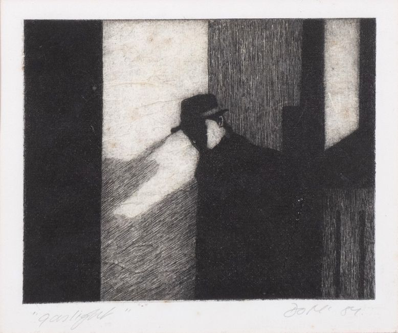Donna MacLean (British, Contemporary)GaslightEtching17 x 20cmSigned and date '84' lower rightTogether with Peter Neal, artist's proof, dated 89; and Kenerssef,'The Steps of the Pantheon', ink drawing (3)