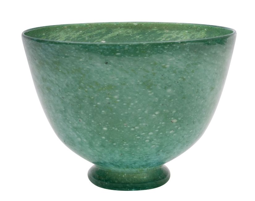 A Whitefriars green cloudy glass bowl, pattern no.7170, after the original design by William Butler, 14cm high.