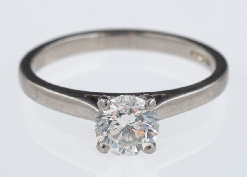 Solitaire diamond ring, brilliant-cut diamond single-stone ring, estimated diamond weight estimated at 0.70 carat, F-G colour, VVS2-VS1 clarity, claw set in platinum ring size L