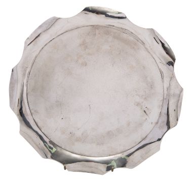 An Elizabeth II silver wavy rim tray, maker's mark TCB, Birmingham 1984, of plain circular form, inscription to reverse, 'Charles Bucknell 1984', 29.5cm (11.5in) high, 725g (23.3 oz)