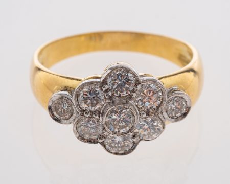 A dress ring set with diamonds in 18ct white and yellow gold, hallmarks for 1991, ring size Q