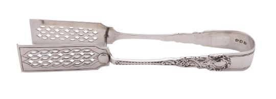 A pair of Victorian silver pastry tongs by George Maudsley Jackson, London 1895, Rococo pattern, 21cm (8.2in) long, 143g (4.6 oz)