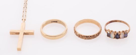 wedding band size R-S, Opal ring Q, 9ct gold only items 10 grams, opal ring 1.8 grams