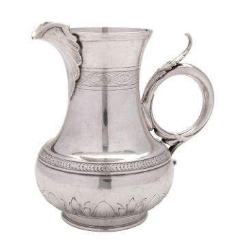 An American silver milk jug by Gorham, probably last quarter of the 19th century, of baluster form, with foliated capped hoop handle, chased and engraved decoration, 13cm (5.3in) high, 300g (9.6 oz)