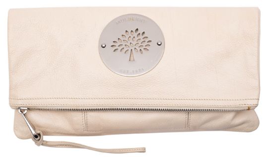Mulberry. A white leather Daria clutch bag, silver tone hardware, together with dust bag.