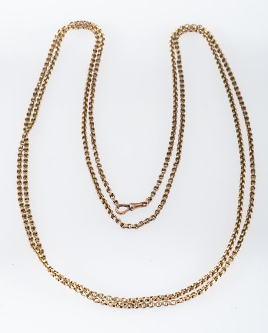 An antique gold belcher guard chain, 9ct, length 160cm Condition Report , weight 19.7 grams