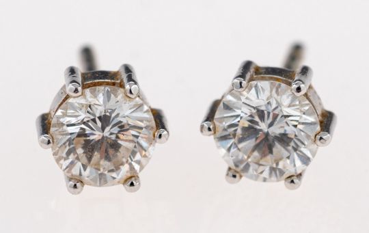 A pair of diamond single stone earrings, the brilliant cut diamonds, estimated to weigh 1.00 carat total, with post fittings.