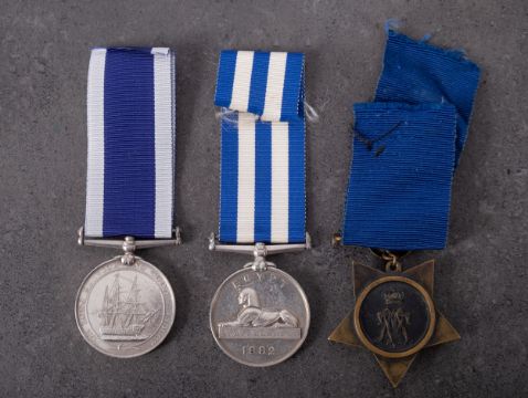 An Egypt Medal 1882 to W J Oliver Lg Stoker HMS Seahorse', together with Victorian Royal Naval LSGC to the same recipient and a Khedive's Star (3)
